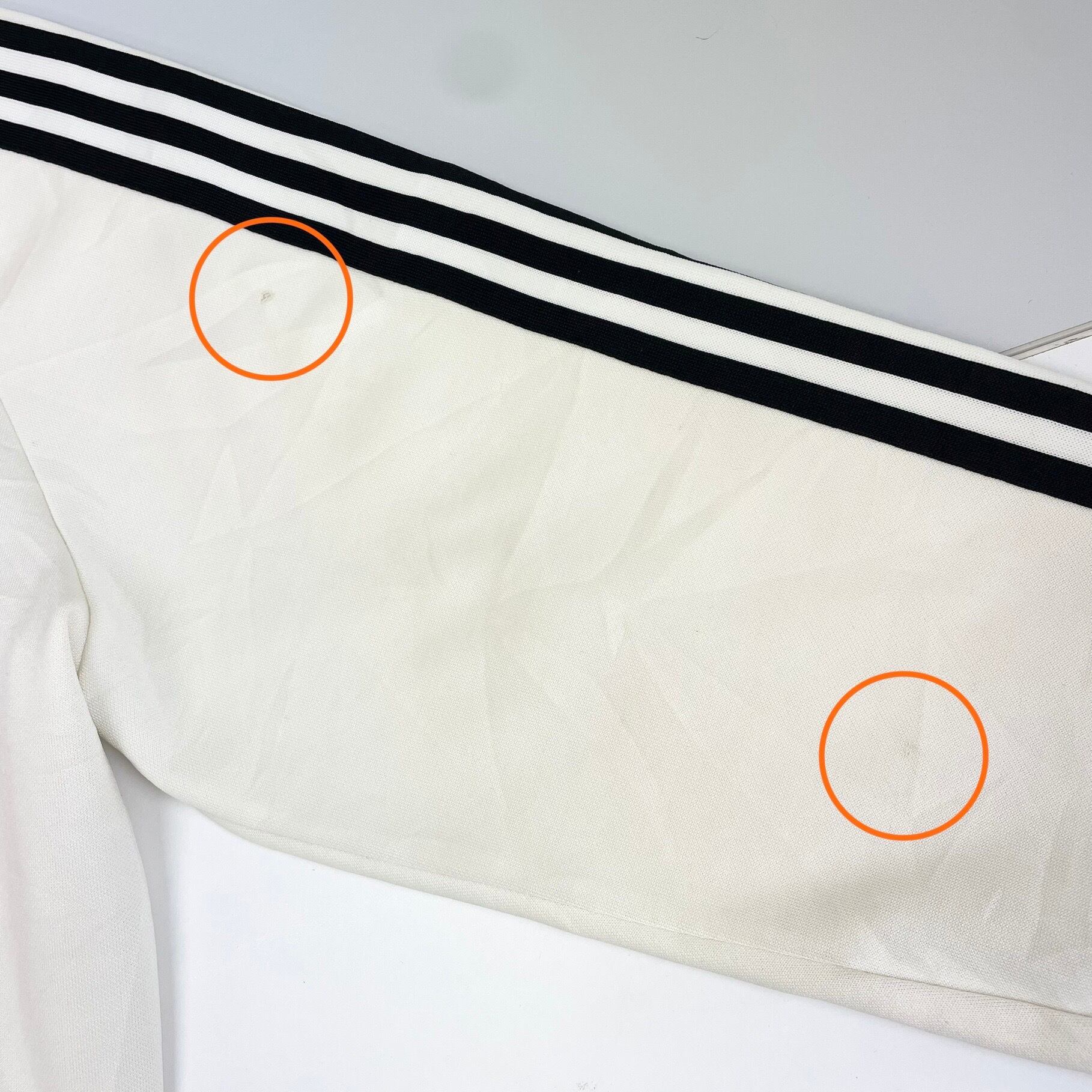 左わき腹、左袖にシミ、右袖にほつれがざいます。(画像9.10.11枚目参照)