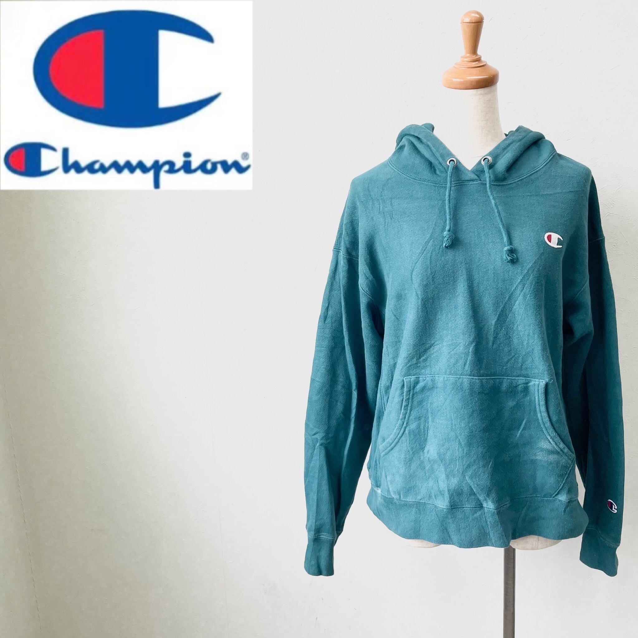 【ホンデュラス製】チャンピオン パーカートレーナー 刺繡目玉ロゴ 単色タグ リバースウィーブ