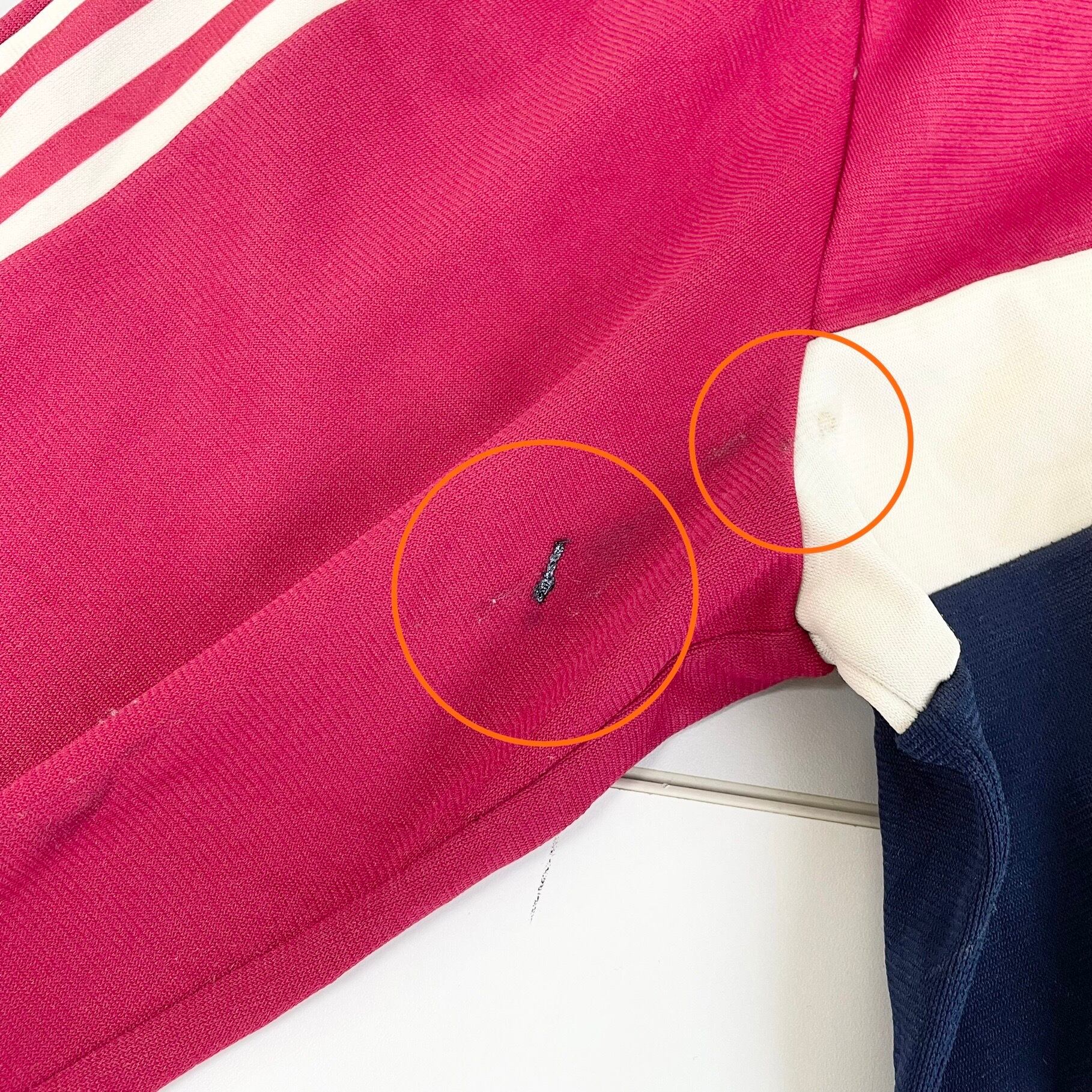 正面裾に焼けたようなキズ、右脇から袖に焼けたようなキズ、背中に補修跡がございます。(画像8-11枚目参照)