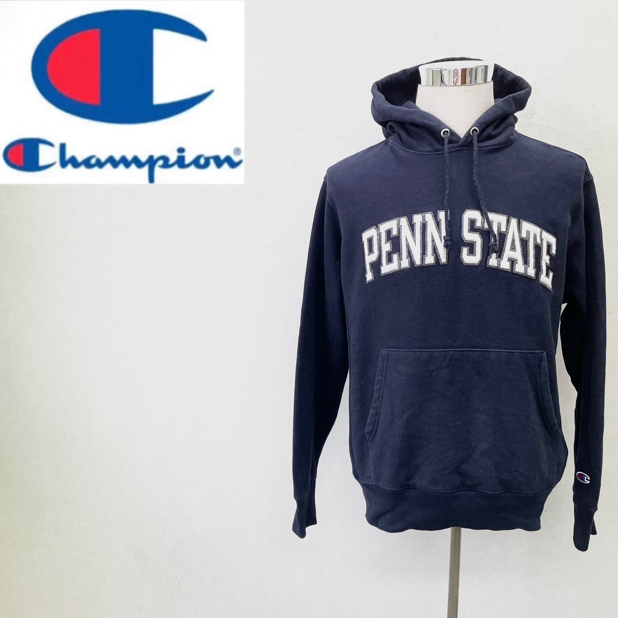 【ホンデュラス製】チャンピオン パーカートレーナー ペンシルベニア リバースウィーブ 刺繡目玉ロゴ 単色タグ